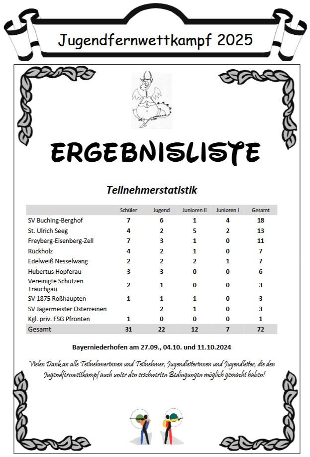 Die 1. Gauschützenmeisterin Karolin Boxhorn und ihr Team luden am 19. September 2025 alle erfolgreichen Schützen der Saison 2024-2025 in ihr Schützenheim St. Hubertus Hopferau. Gleichzeitig war es an diesem Tag die letzte „Staffelstab-Übergabe“ der langjährig verdienten Amtsträger: Gausportwart Thomas Borosch übergab an Marcel Schönfeld sowie Rundenwettkampfleiter Joachim Brückner übergab an Markus Mitzel.