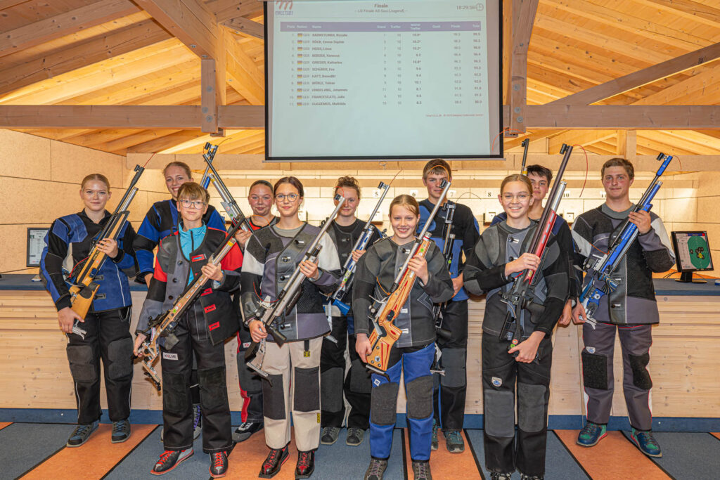 Auf Kommando wurden danach zehn Schuss innerhalb von jeweils 50 Sekunden abgegeben. Zwischenstände vermittelten Transparenz, erhöhten aber auch den Druck auf die Schützen. Die ruhigste Hand und die besten Nerven hatte in diesem Jugend-Finale Rosalie Barnsteiner (SV Rückholz). Den zweiten Platz entschied Emma-Sophie Böck (SV Freyberg-Eisenberg) für sich und Dritter wurde knapp dahinter Linus Heiss (SV St. Ulrich Seeg).