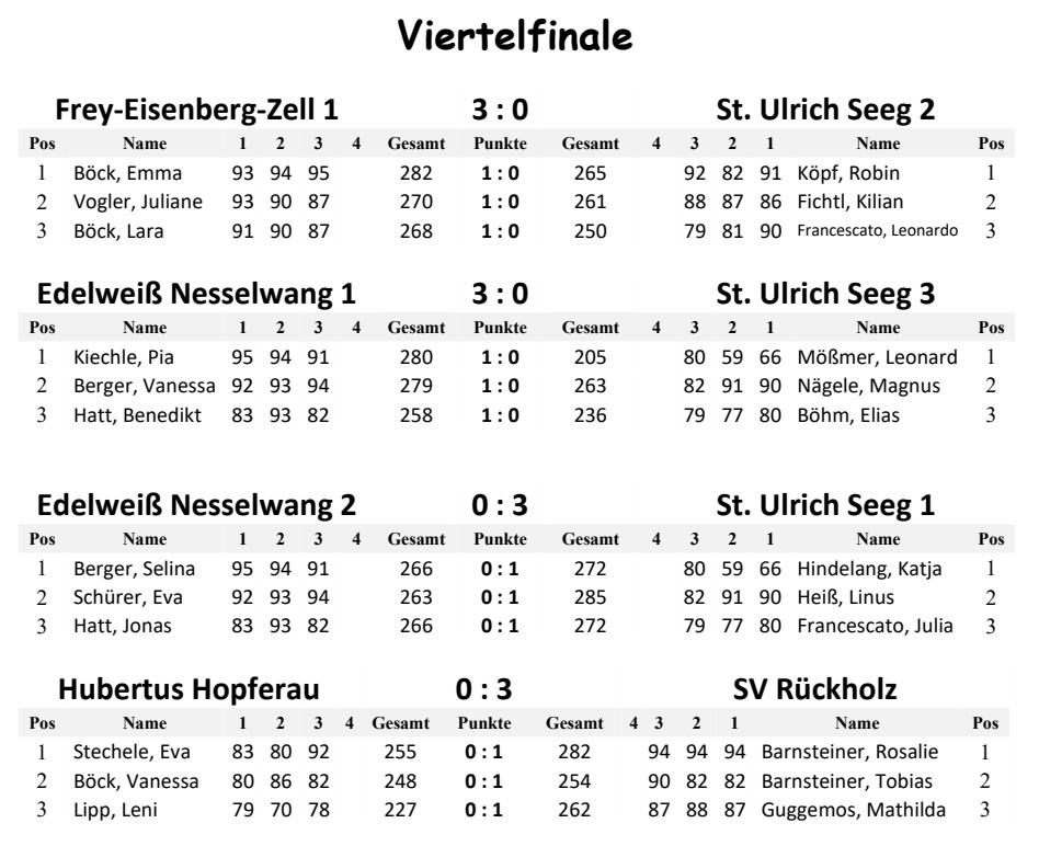 Viel Zeit blieb nicht mehr, um die 22. Auflage unseres Gaujugendpokals durchzuführen. Da das ganze Jahr von vielen Terminen und Terminüberschneidungen geprägt war, blieb letztlich nur noch die Zeit zwischen Weihnachten und Neujahr um den Wettkampf durchzuführen. Mit den acht gemeldeten Mannschaften wurde dann mit einem Viertelfinale begonnen und am gleichen Tag noch bis zum Finale durchgeschossen.